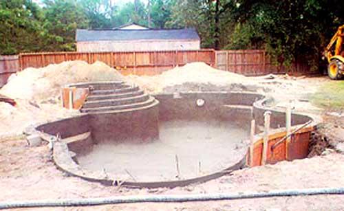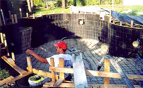 We pour the walls around the steel grid walls built in Step 2. This will provide the hard surfaces necessary for the interior design of your pool.